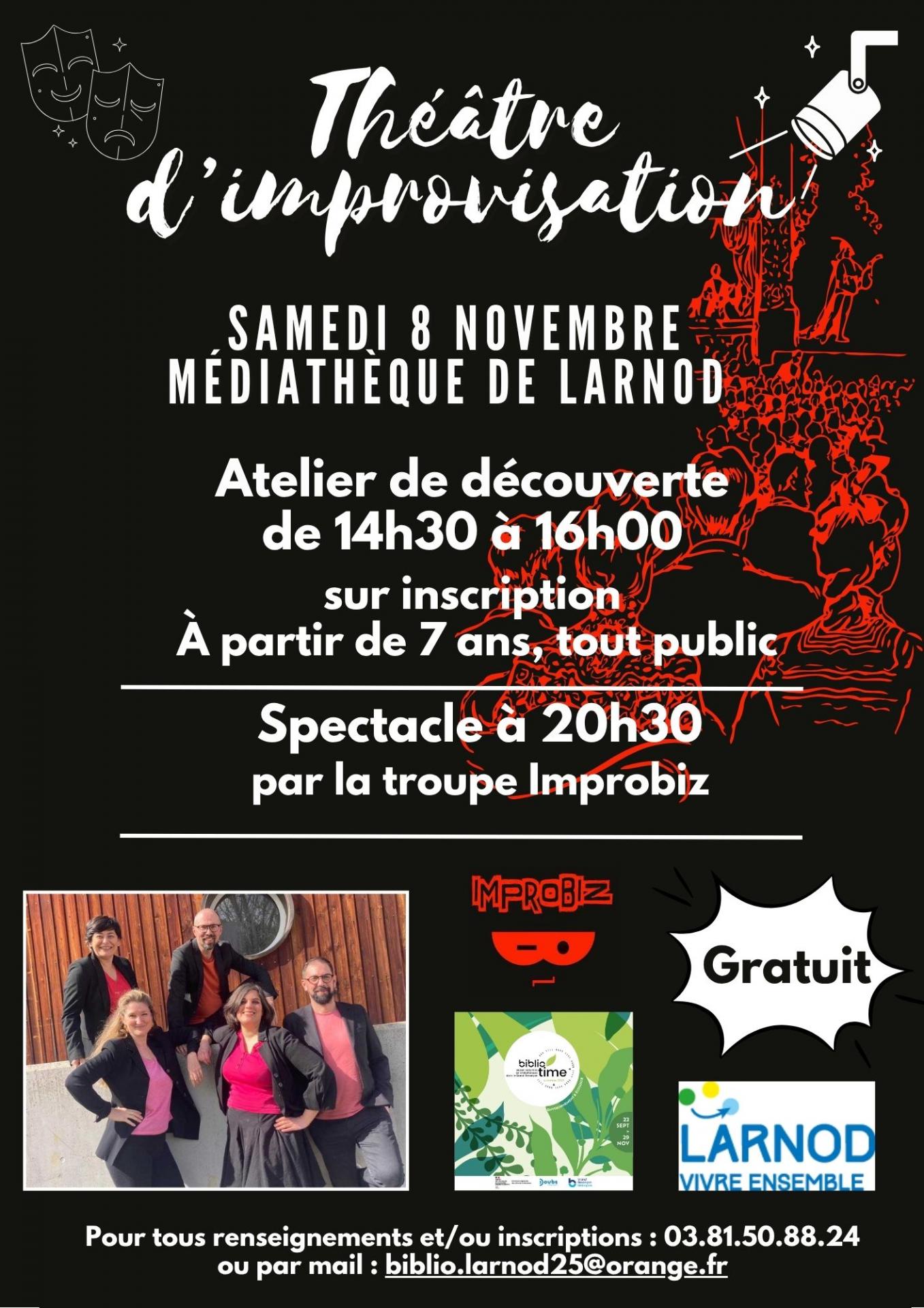Le samedi 8 novembre, nous vous proposons du théâtre d’improvisation, avec la troupe Improbiz, dans le cadre du programme "Bibliotime" :